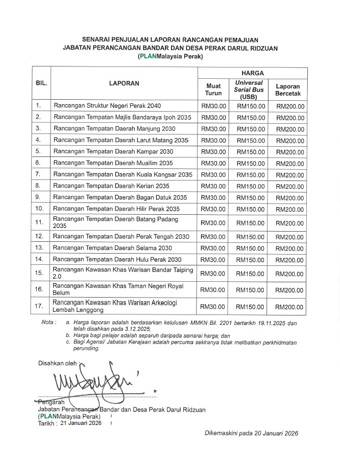 Tingkat 7, Bgn. Seri Perak, Jalan Panglima Bukit Gantang Wahab,30646 Ipoh, Perak Darul Ridzuan.Tel: 605-2095708 atau 2095780 Faks: 605-2553022 emel: planmalaysia@perak.gov.my